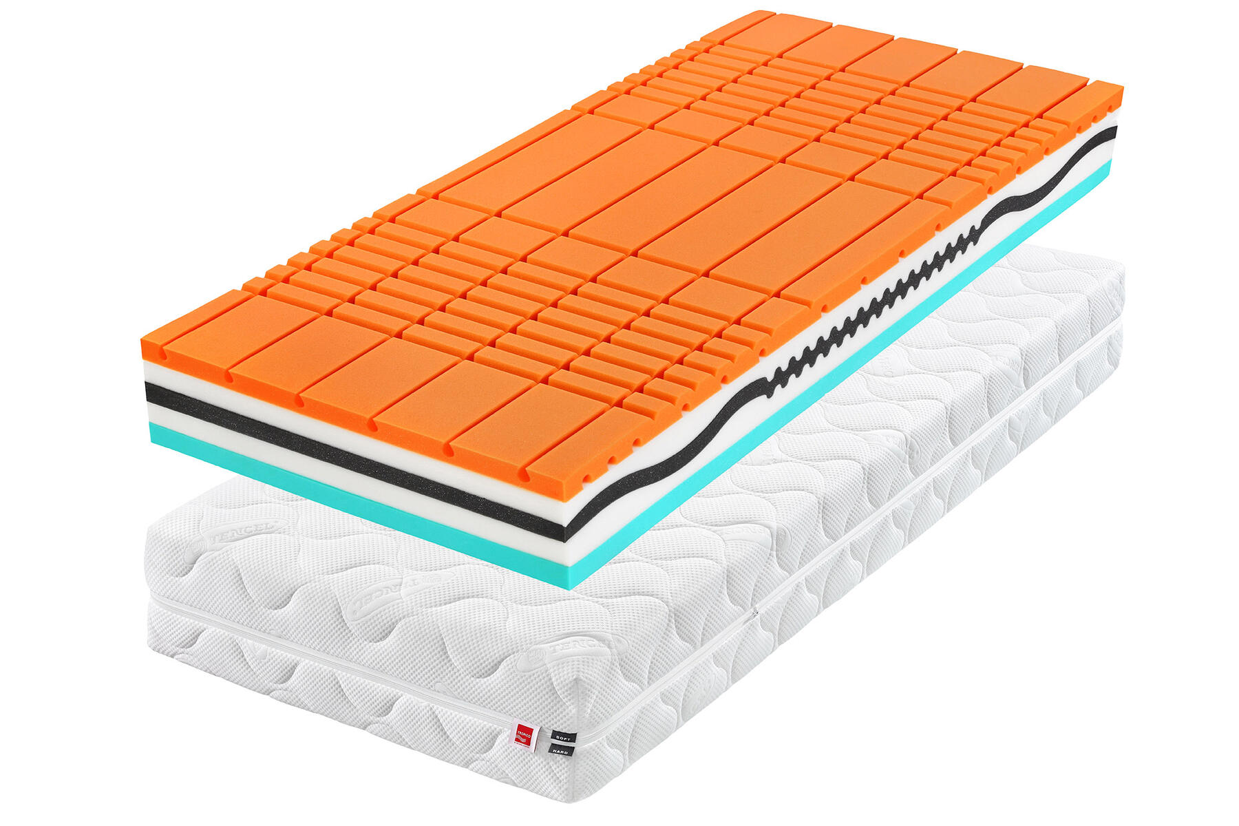 Massive Kaltschaumschicht mit hohem Raumgewicht zeichnet sich durch hohe Rückstellkraft, erhöhten.
