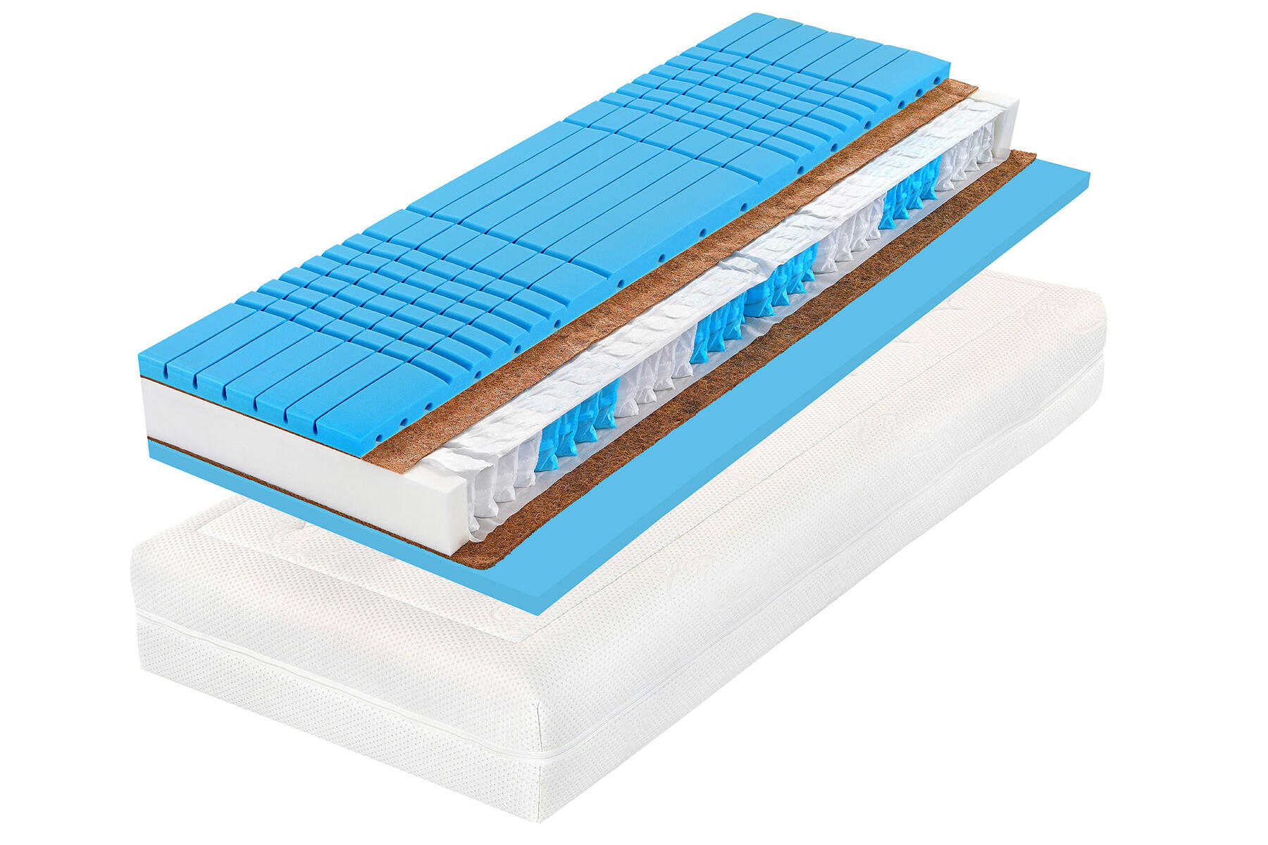 Der Federkern, in 7 anatomische Zonen ausgelegt, unterstützt und kopiert den Körper in jeder Position. Robuster Schaumstoffrahmen für die Stabilität der Konstruktion und bequemes Aufstehen.