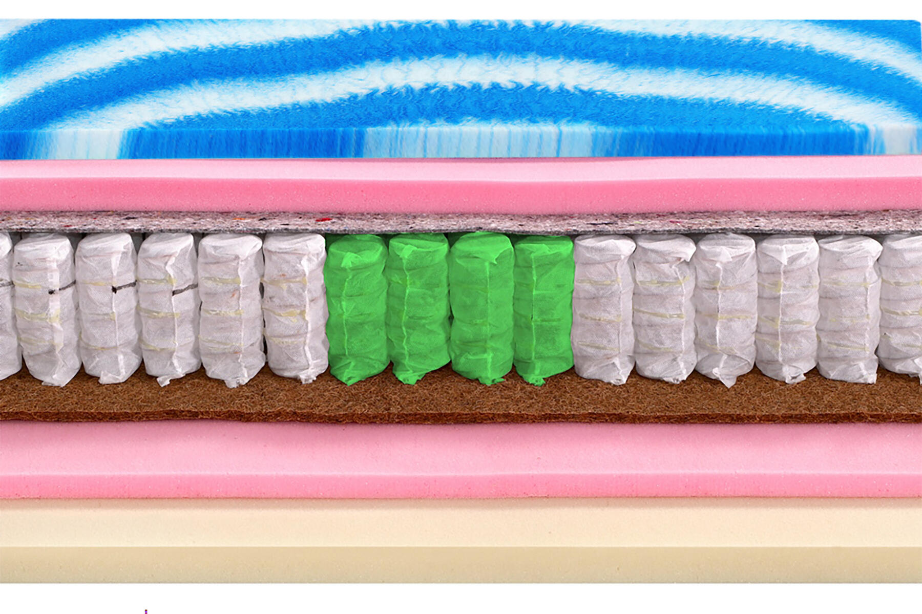 Der Federkern, in 7 anatomische Zonen ausgelegt, unterstützt präzise und kopiert den Körper in jeder Position. Robuster Schaumstoffrahmen für die Stabilität der Konstruktion und bequemes Aufstehen.