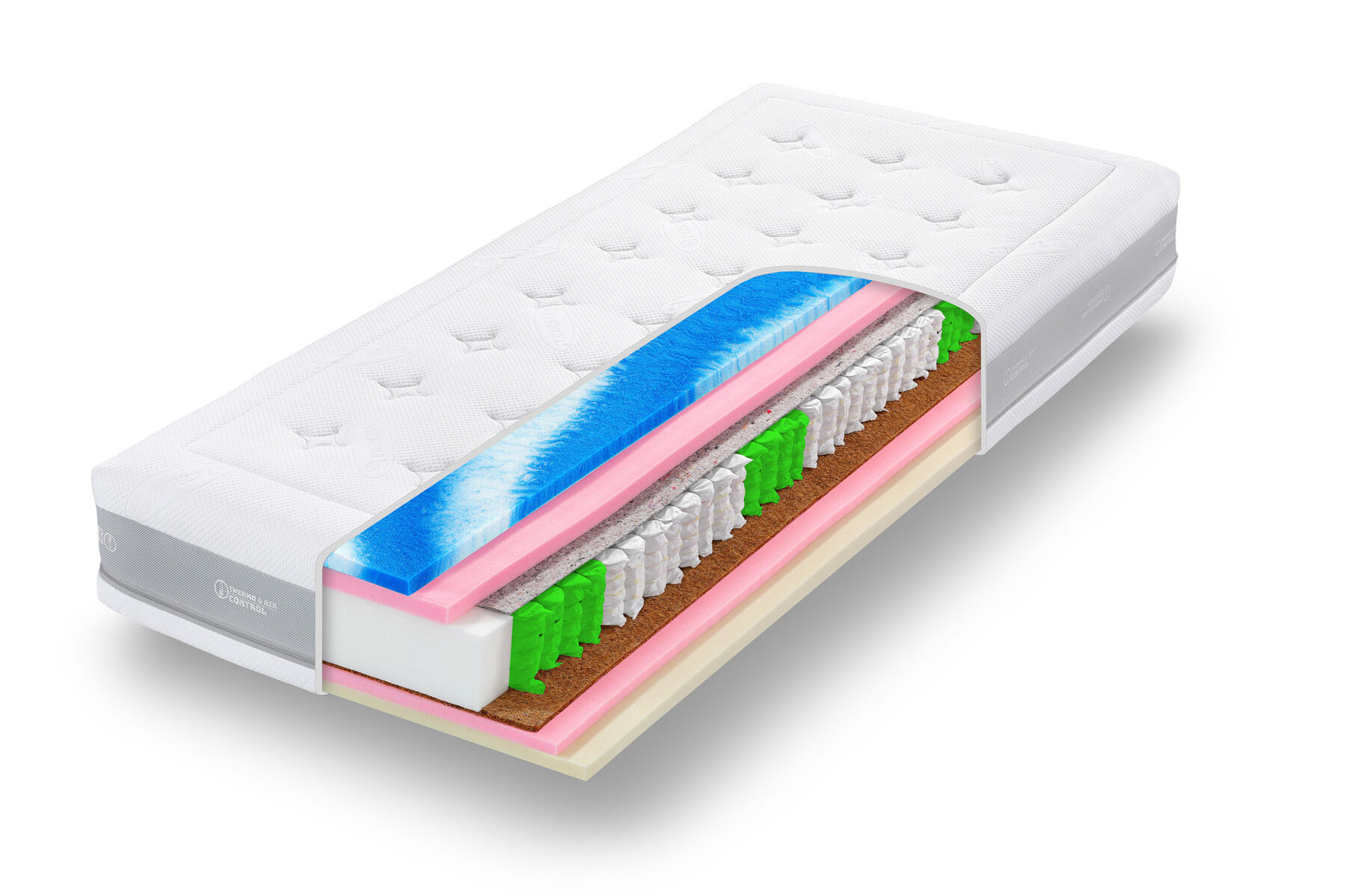 Er kombiniert die Weichheit von Latex mit der perfekten Druckverteilung der Gelmatratzen. Hoch atmungsaktiv, hilft bei der richtigen Wärmeregulierung.