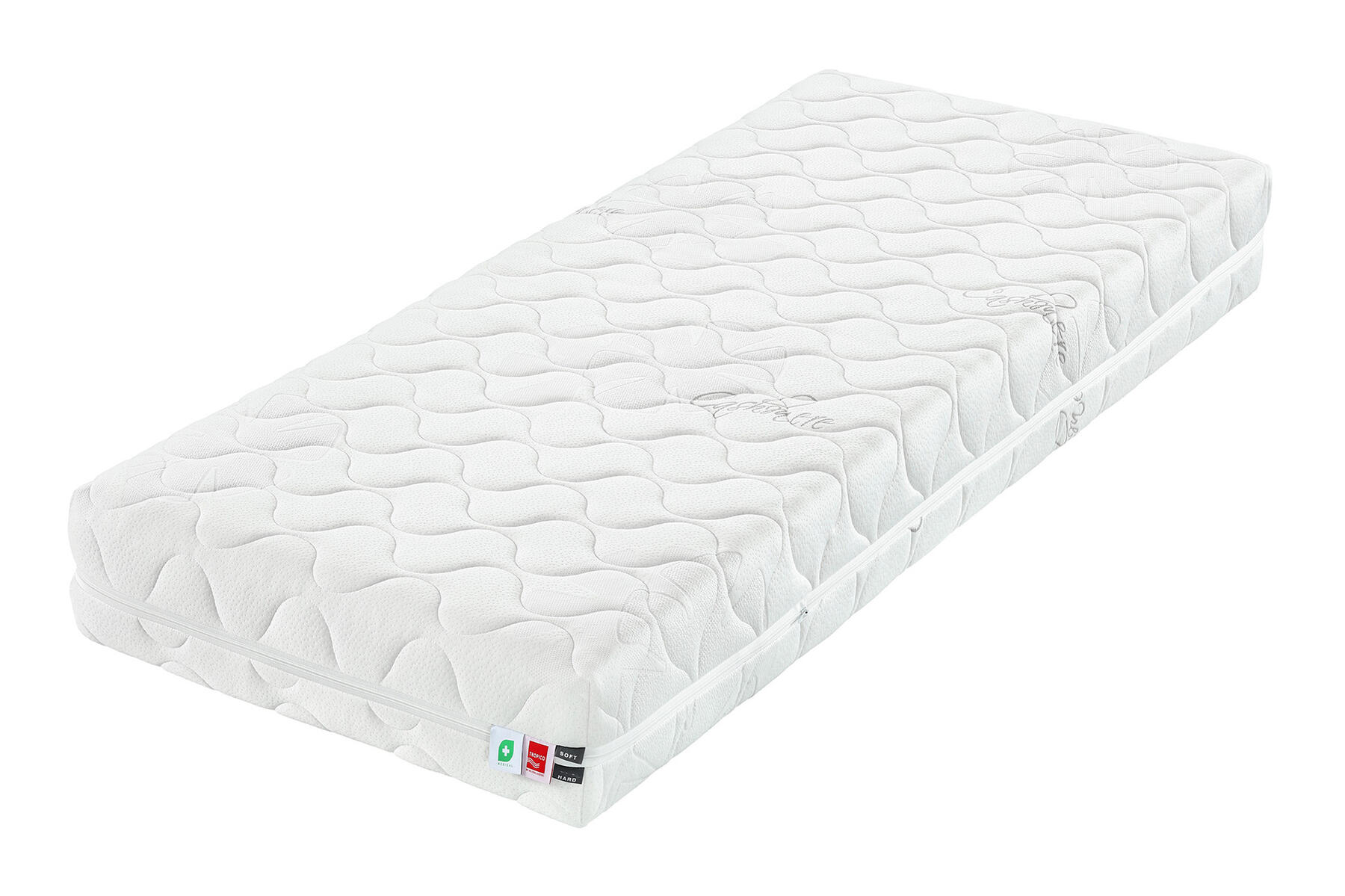 Orthopädische 7-Zonen-Sandwichmatratze mit härterer und weicherer Seite aus den Schäumen Flexifoam® mit unterschiedlichem Härtegrad auf jeder Seite. Erhöhte Unterstützung beim Aufstehen. Für Allergiker geeignet.