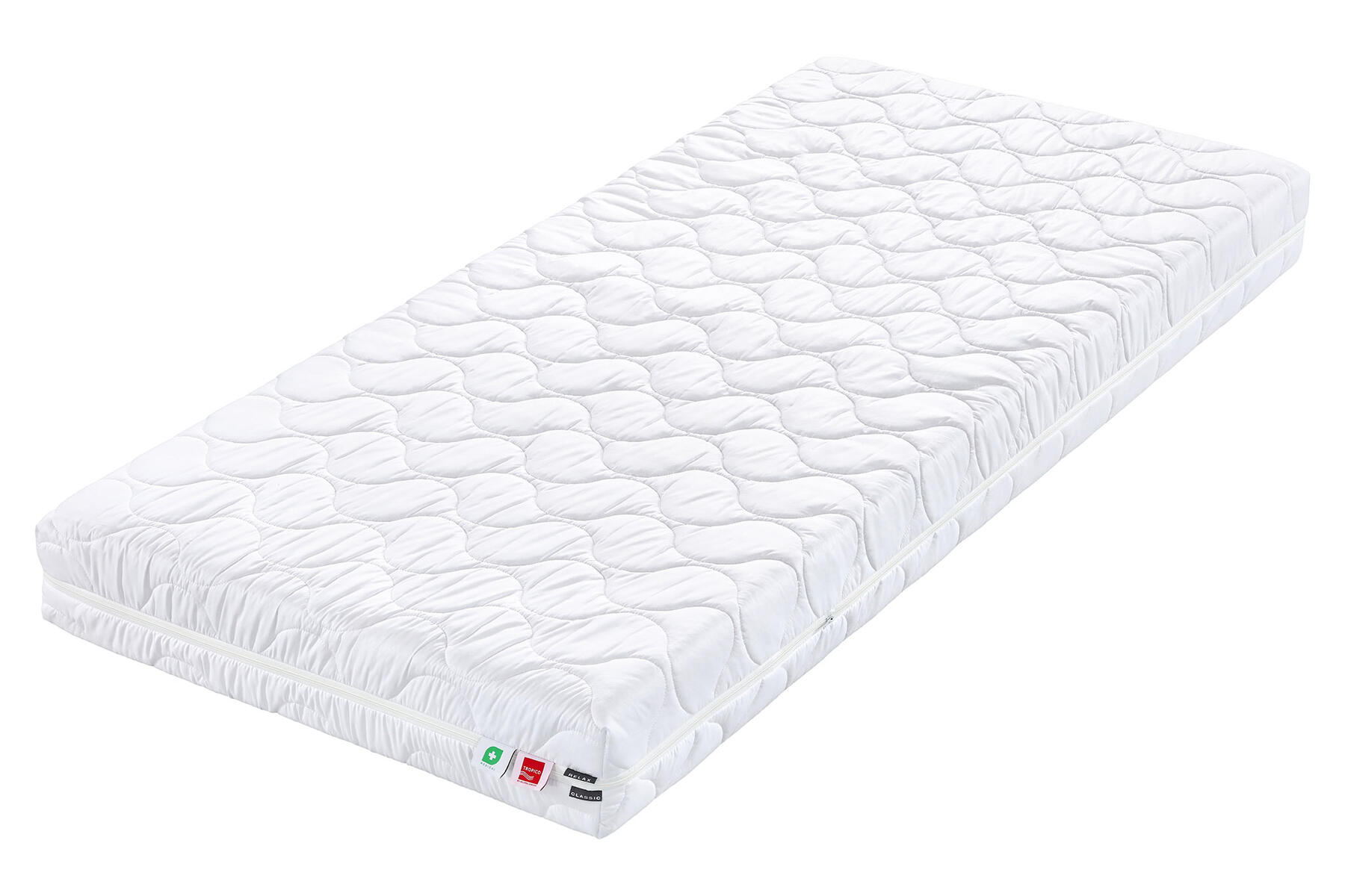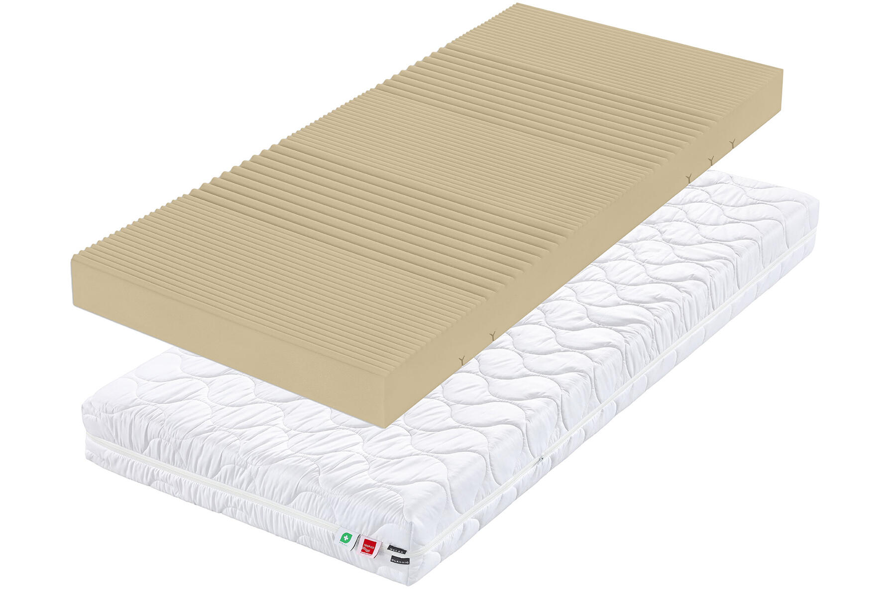 Orthopädischer 5-Zonen- und stabiler Kern aus flexiblem, widerstandsfähigem und atmungsaktivem Schaum mit höherem Raumgewicht unter der Schutzmarke unseres Unternehmens. Er atmet gut und hält sogar Kindersprüngen stand. Fein profilierte nachgiebigere Seite (SOFT-SEITE) und härtere, vollkommen flache (HARD-) Seite.